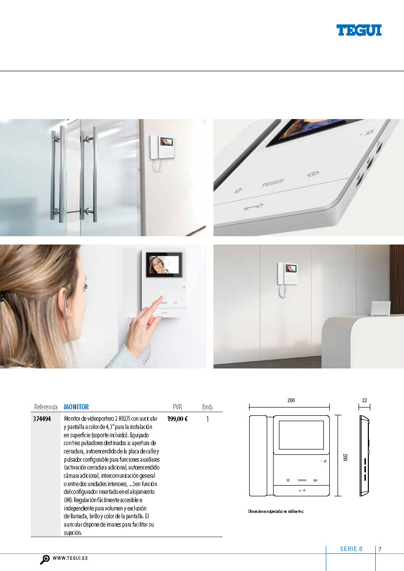 SERIE 8 es el nuevo monitor para videoportero 2 HILOS de Tegui, que combina estilo y funcionalidad.