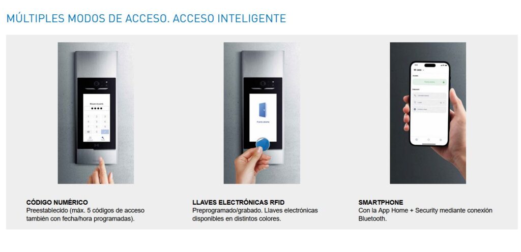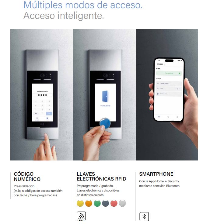 - Módulo Acceso RFID: Desbloqueo con llaves electrónicas o mediante la app Home + Security.