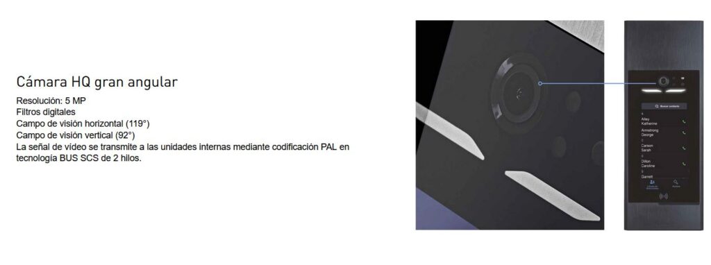 - Resolución de vídeo en PAL digital con transmisión a través del bus SCS de 2 hilos.